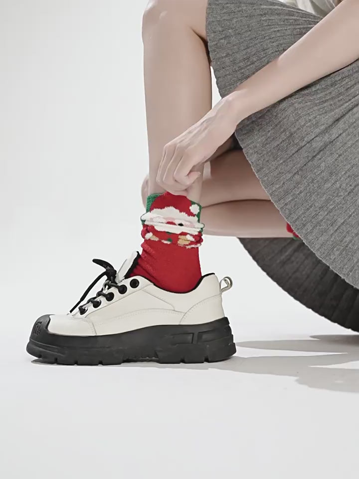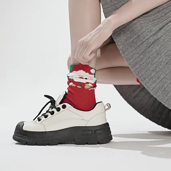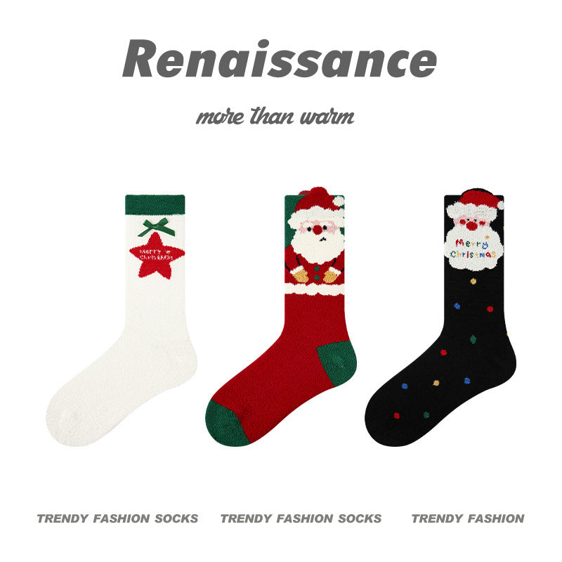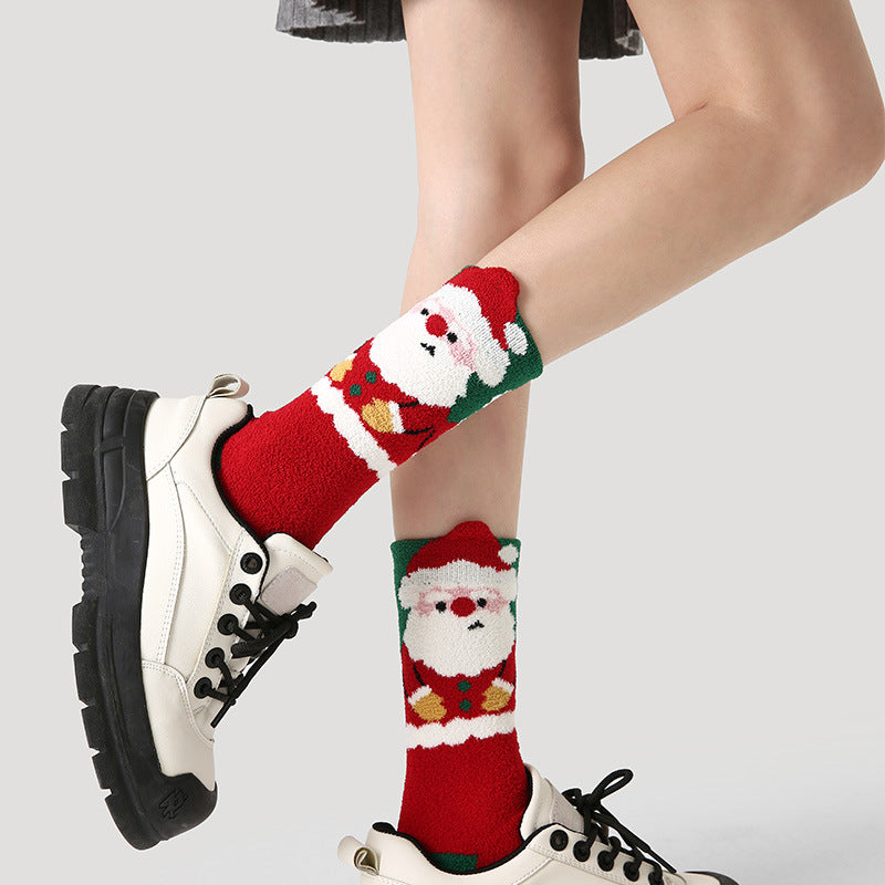 2025 Fall Winter Holiday Series Cartoon Socks Women's Christmas Red and Green Cotton Middle-tube Socks