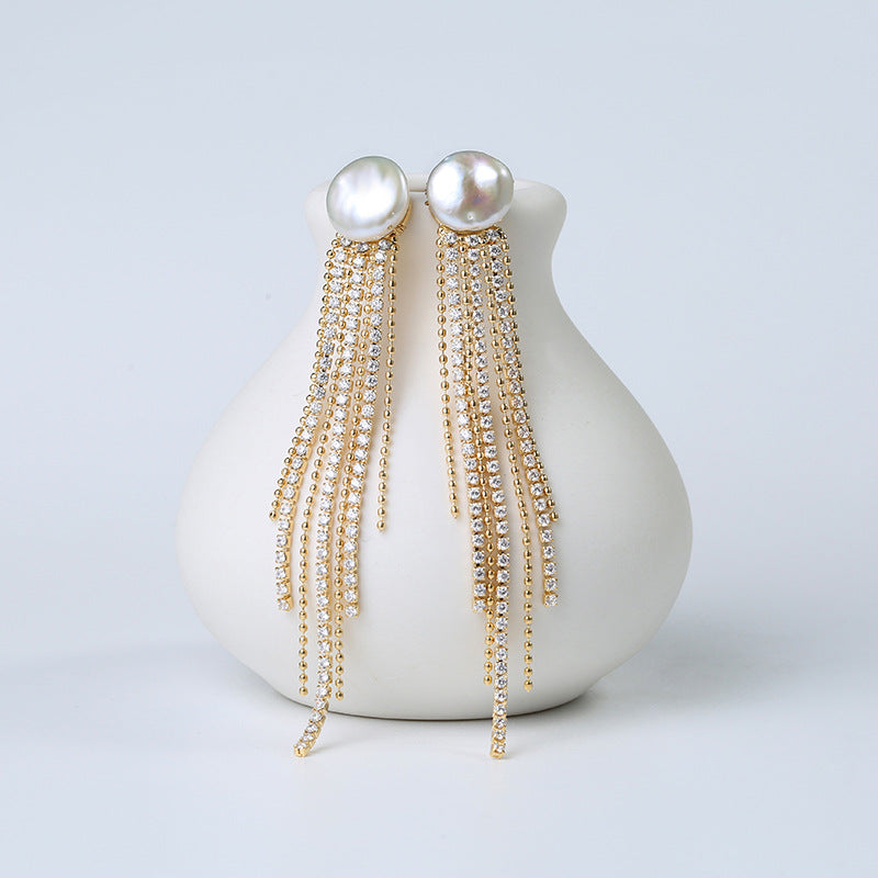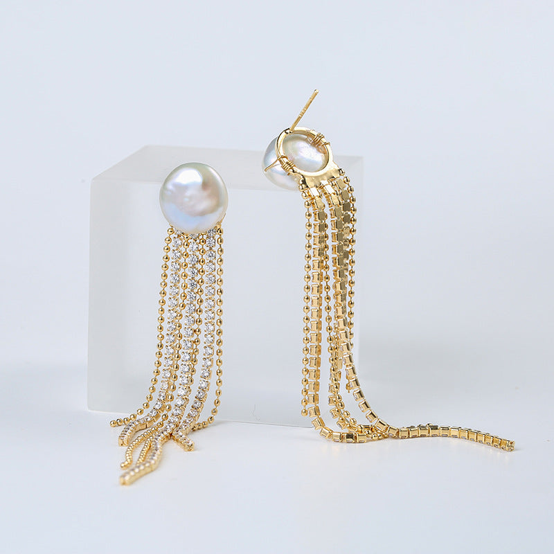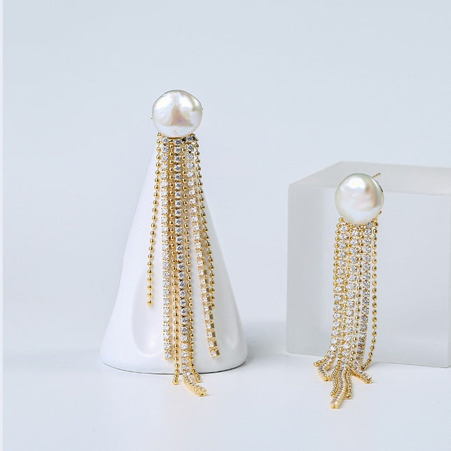 2025 New Baroque Shaped Pearl Tassel Long Earrings Women's Korean Version Personalized Teardrop-shaped Earrings