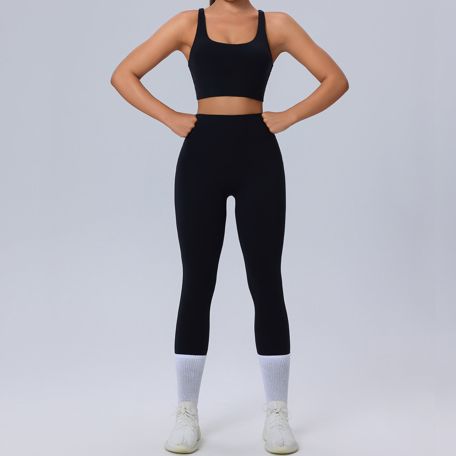 2025 New Black Large Size Yoga Suit Women's Brushed Nude Tight High Elastic Breathable Fitness Sportswear