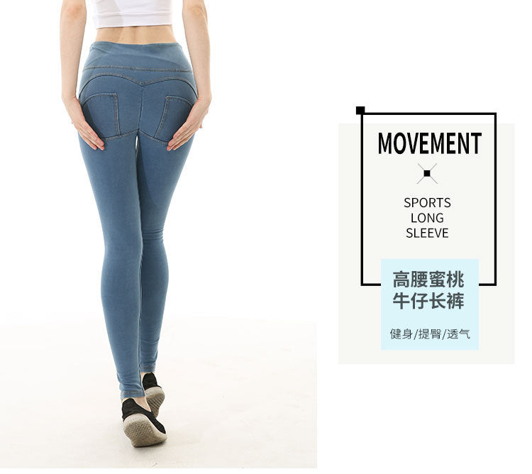 2025 New Dark Blue Sports Yoga Pants Women's Peach Hips Sports High Elasticity Fitness Long Jeans