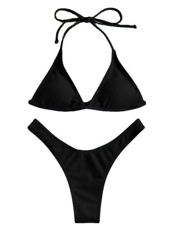 2025 New European And American Solid Color Platband Three-point Bikini Sexy Two-piece Swimwear
