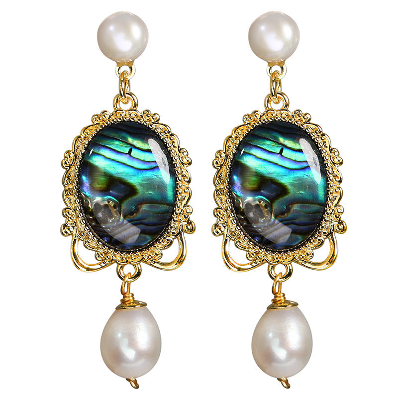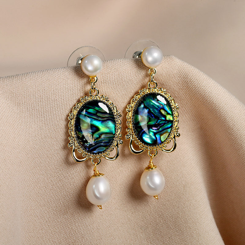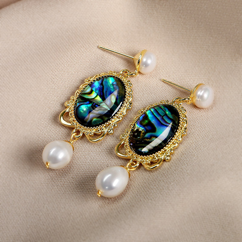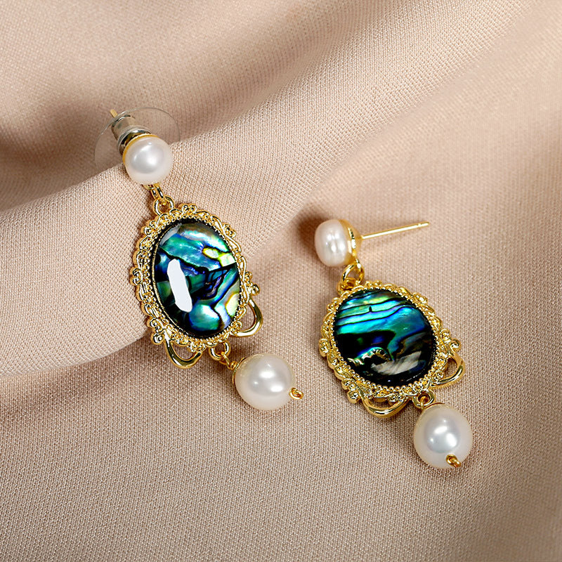 2025 New Retro 925 Silver Personality Colorful Shell Freshwater Pearl Earrings Women's Trendy Geometric Eardrop