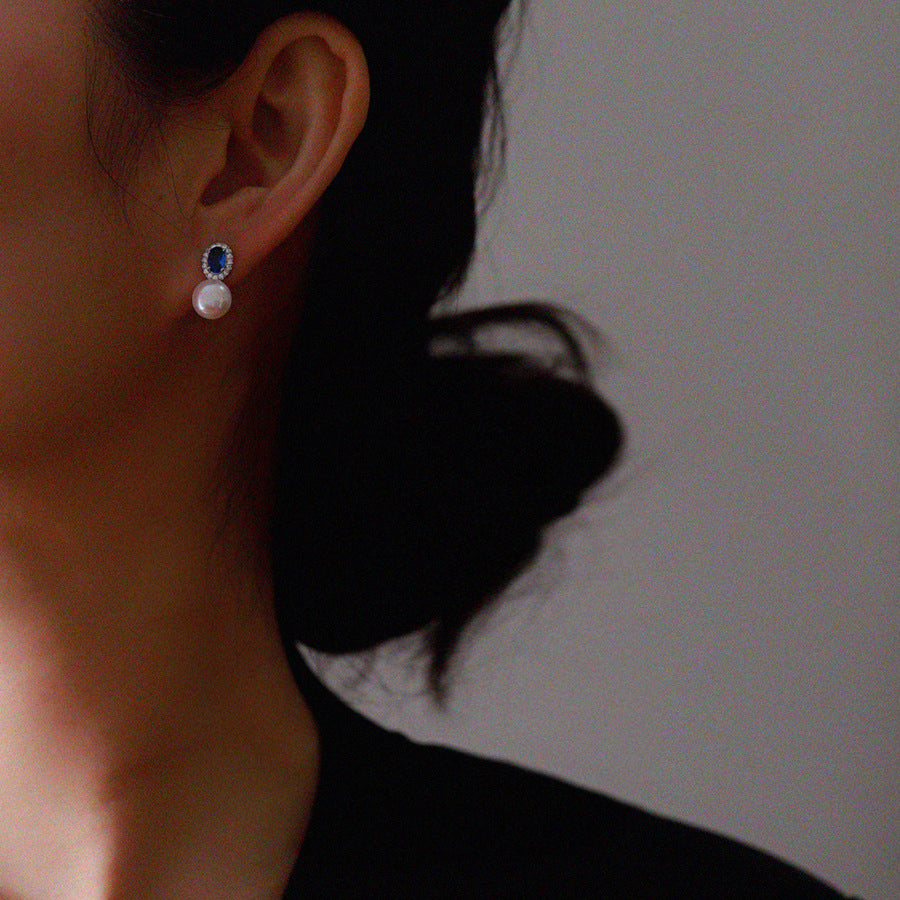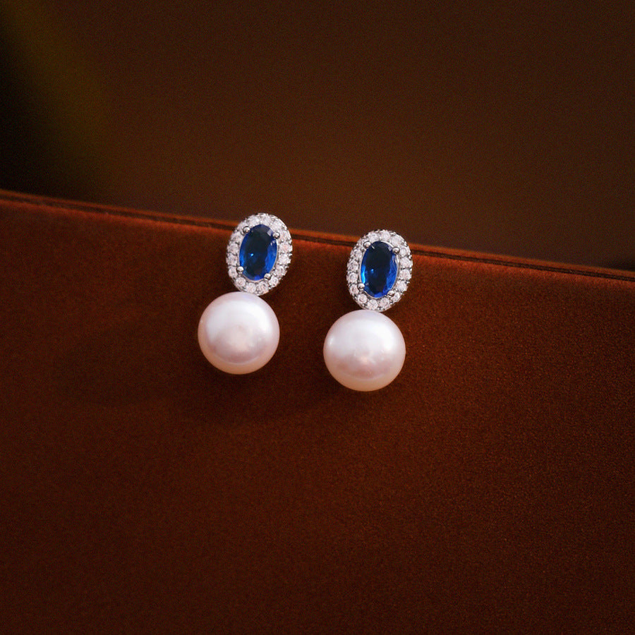 2025 New Simple Fashion Commuting Blue Zircon Pearl Earrings For Women