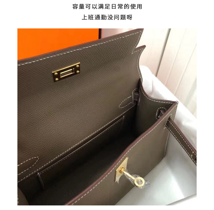 2025 New Spring Summer Grey Palm Pattern Leather Kelly Bag Women's Pig Nose Chain Shoulder Crossbody Small Square Bags