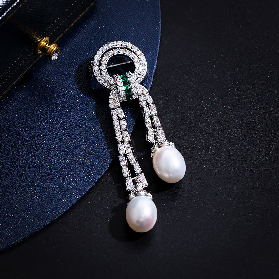 2025 New Women's Stylish And Simple Tassel Micro-inlaid Long Brooch Jewlery