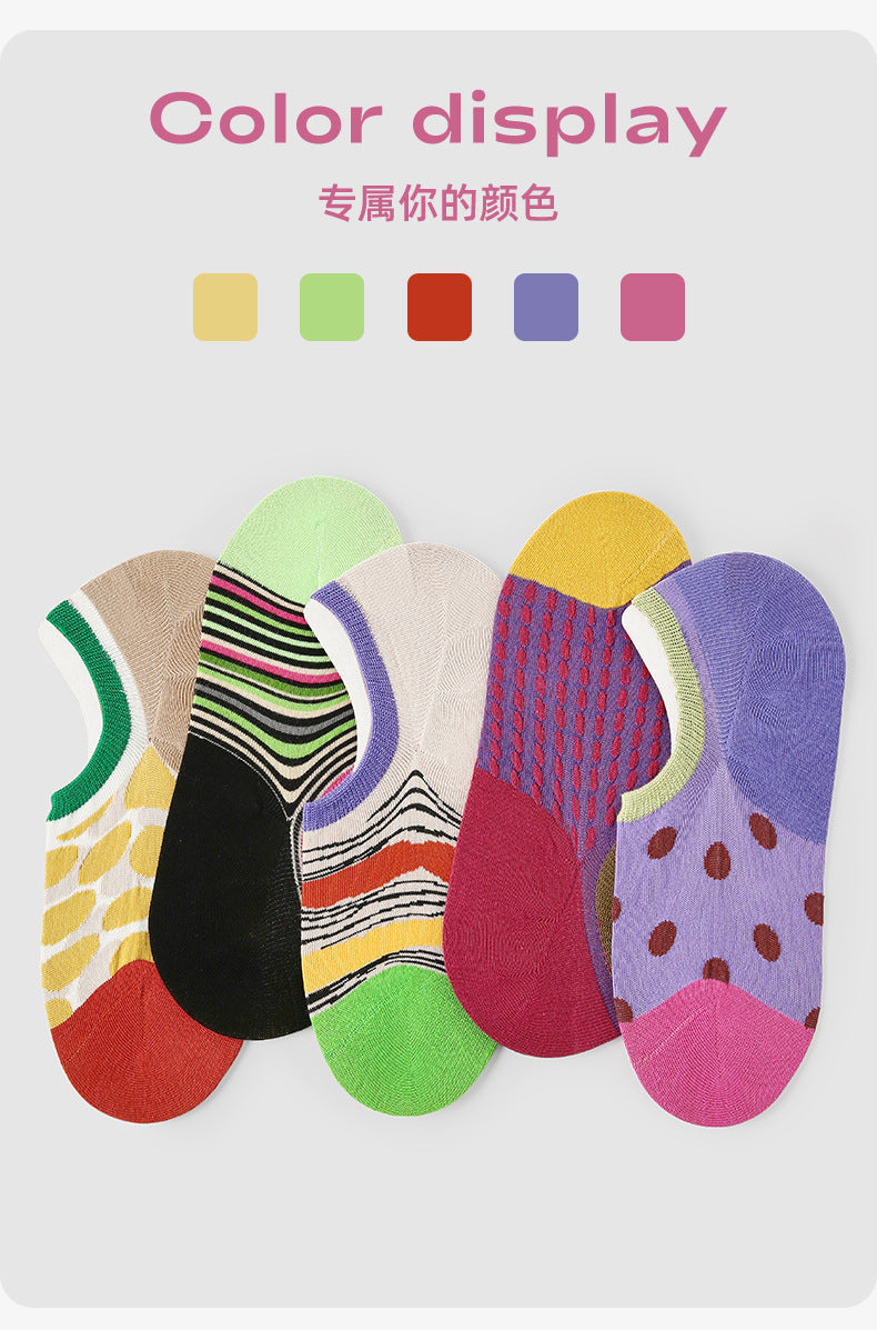 2025 Spring Summer Japanese Contrast Color Polka Dot Boat Socks Women's Non-slip Heel Shallow Invisible Short Socks