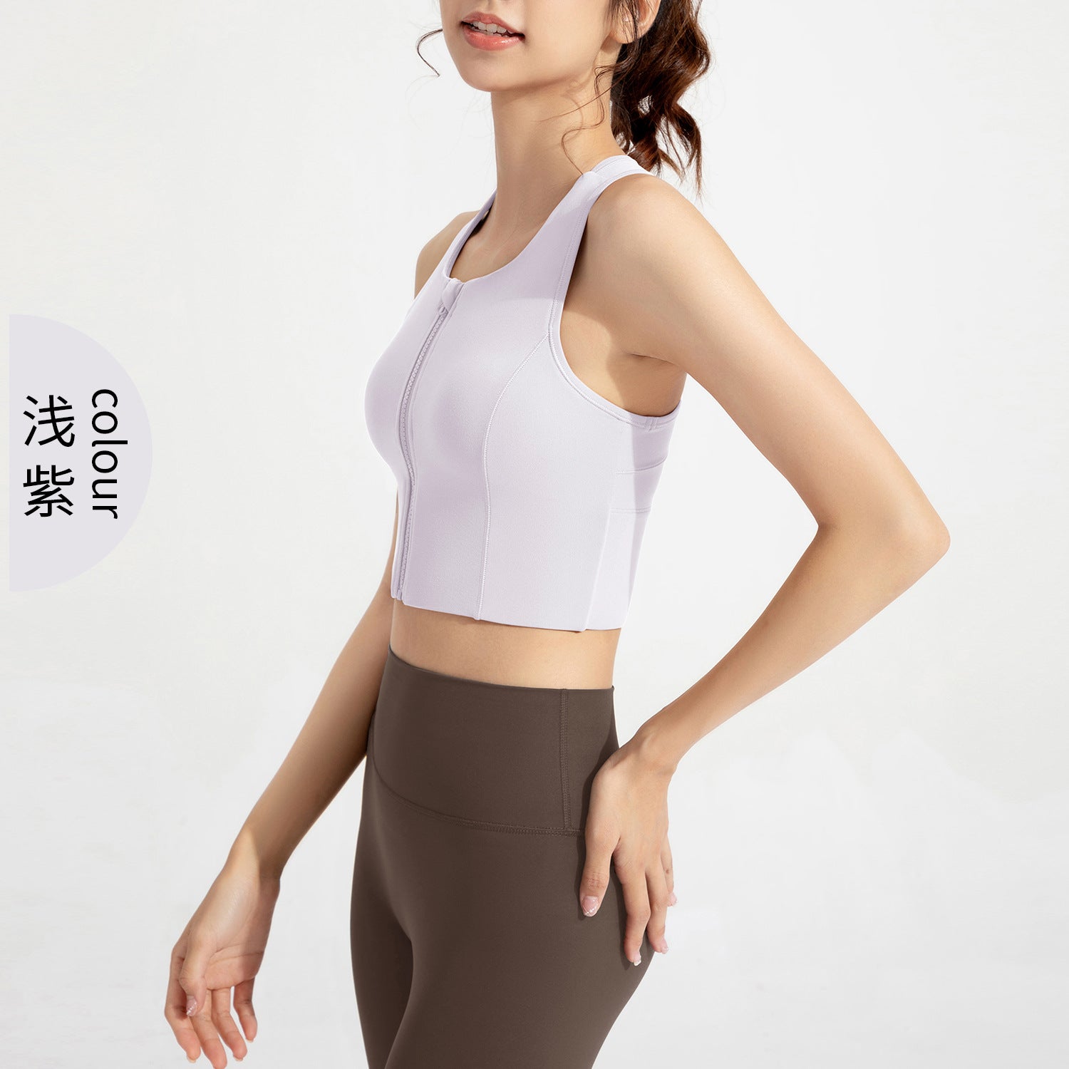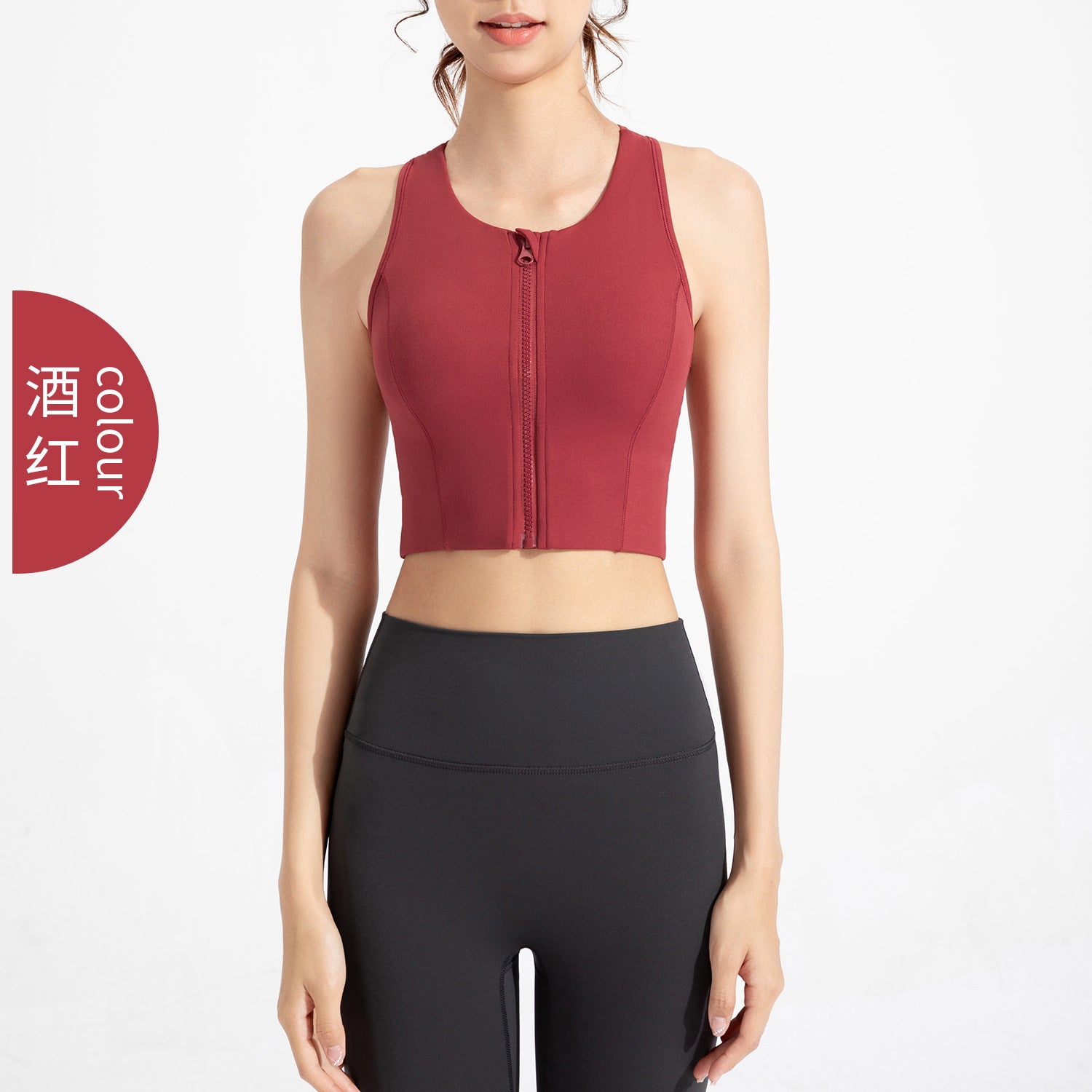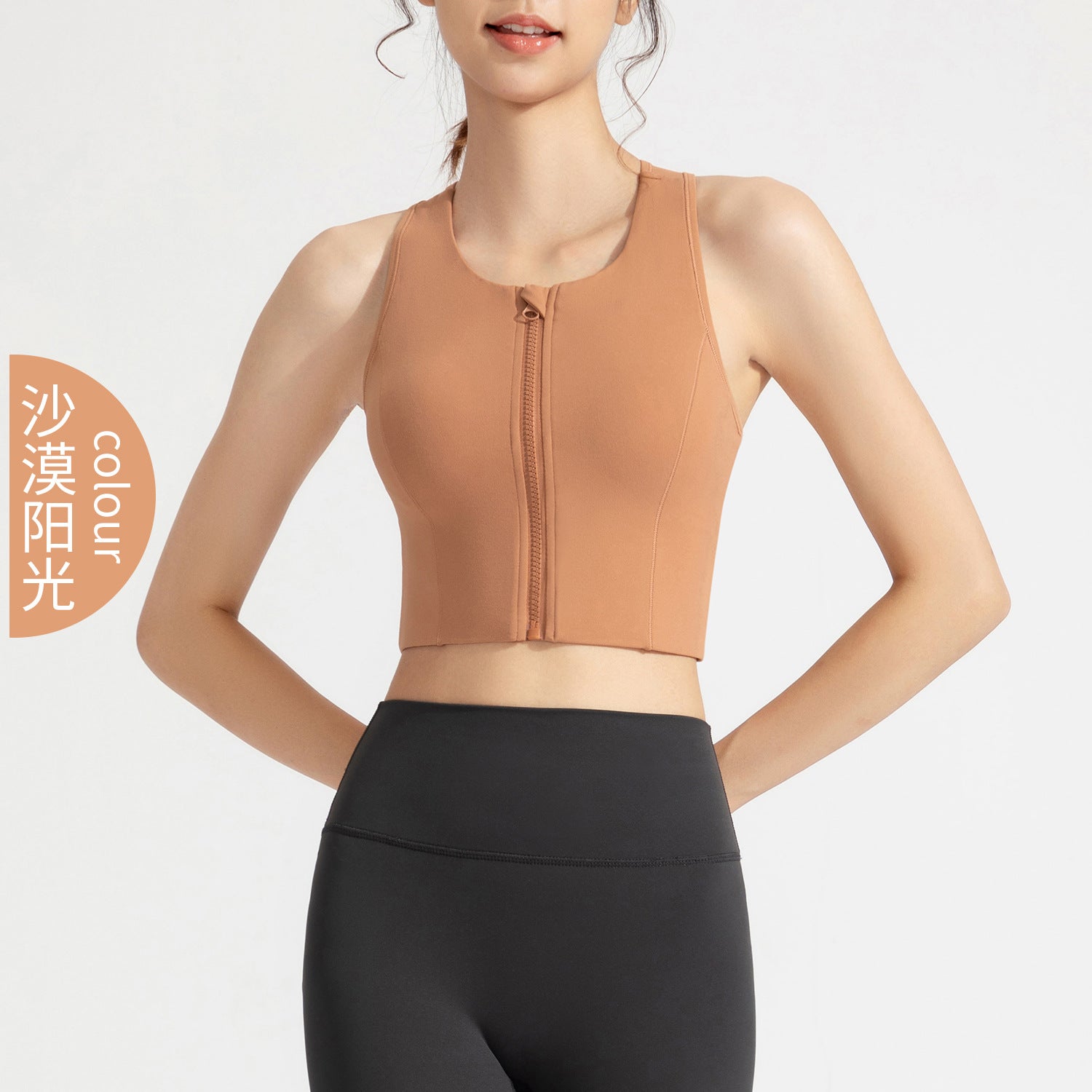 Black Antibacterial Chest Pads Nude Zipper Sport Bra Women's Shockproof Running Gym High-intensity Yoga Vest