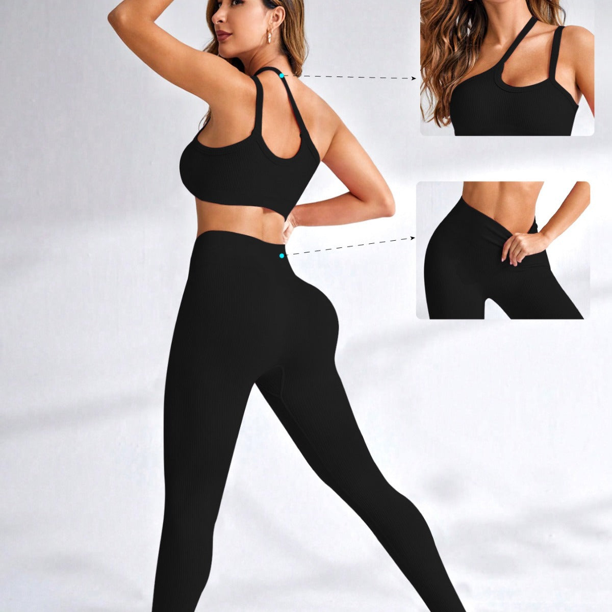 Black Sports Yoga Two-piece Suit Sexy Tight-fitting Oblique Shoulder Sports Suit