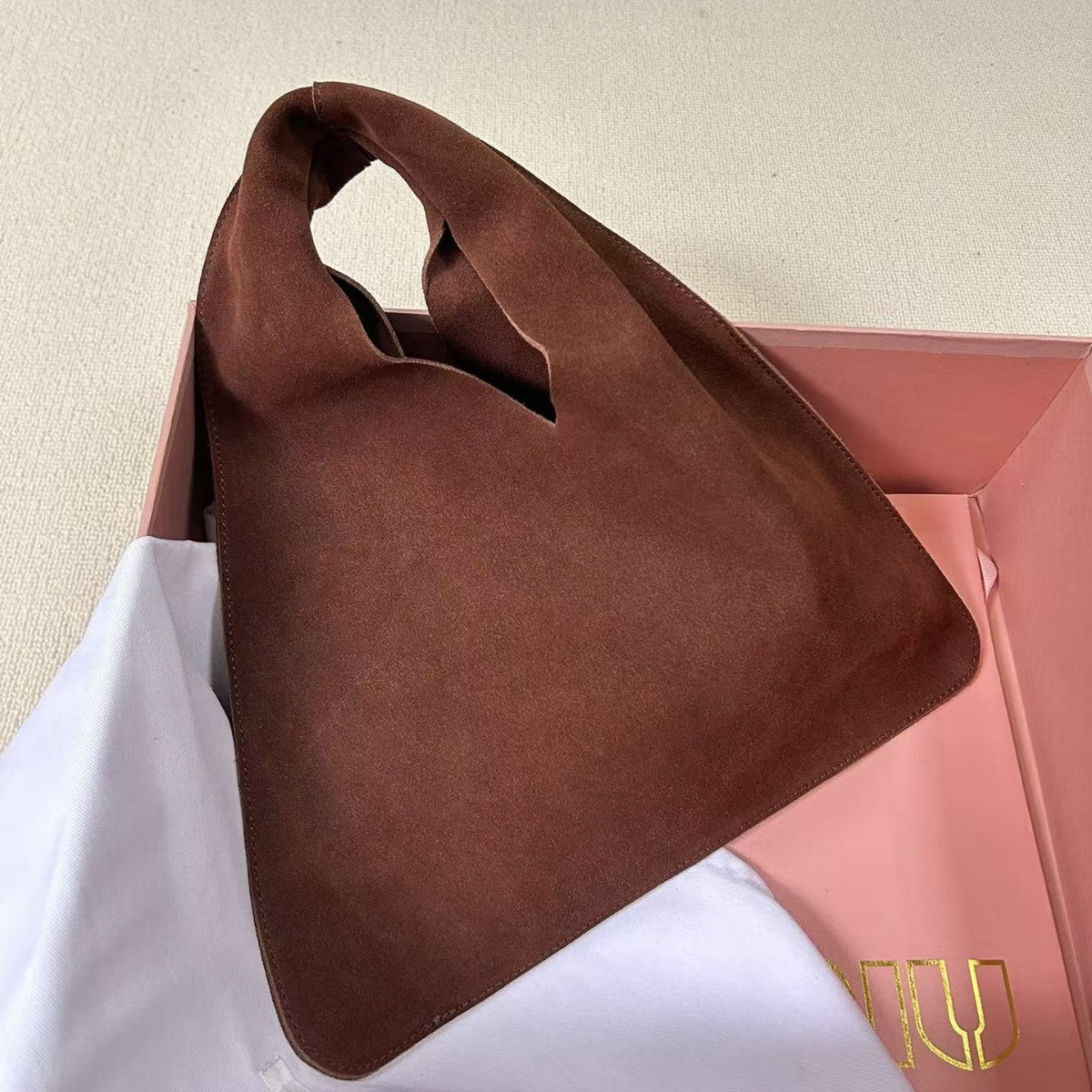 Brown Autumn Winter New Frosted Suede Leather Triangle Bag Women‘s Popular Retro Trend Hand-held Shoulder Underarm Bag