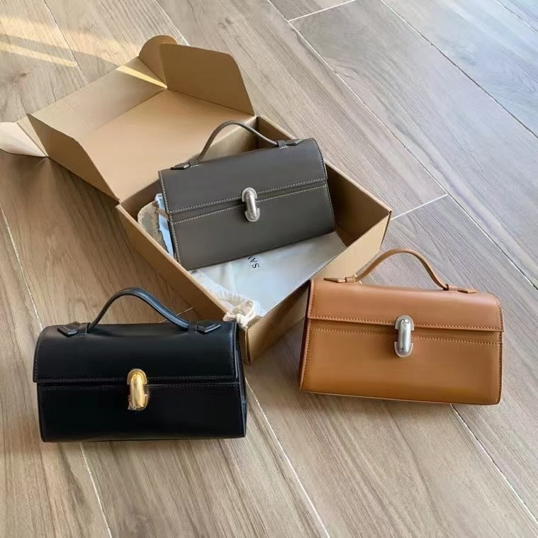 Original single bag new niche design simple handmade mini hand-held flip cover bag women's bag cowhide turn buckle women's bag, Italian steel stamp brand leather small soft embryo calfskin full handmade, each color has a different matching effect fashionable just need every link is great craftsmanship.