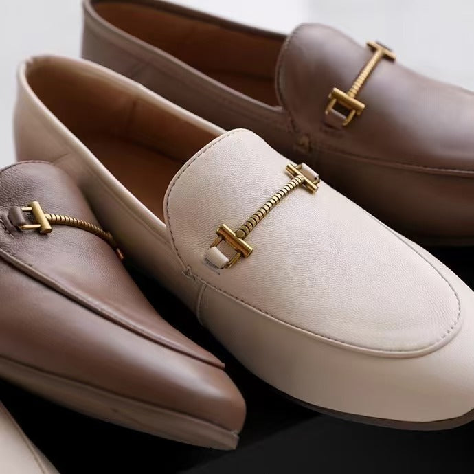 Coffe Color Super Soft Lambskin Metal Buckle Women's Bean Shoes Flat Mules Loafers Shoes