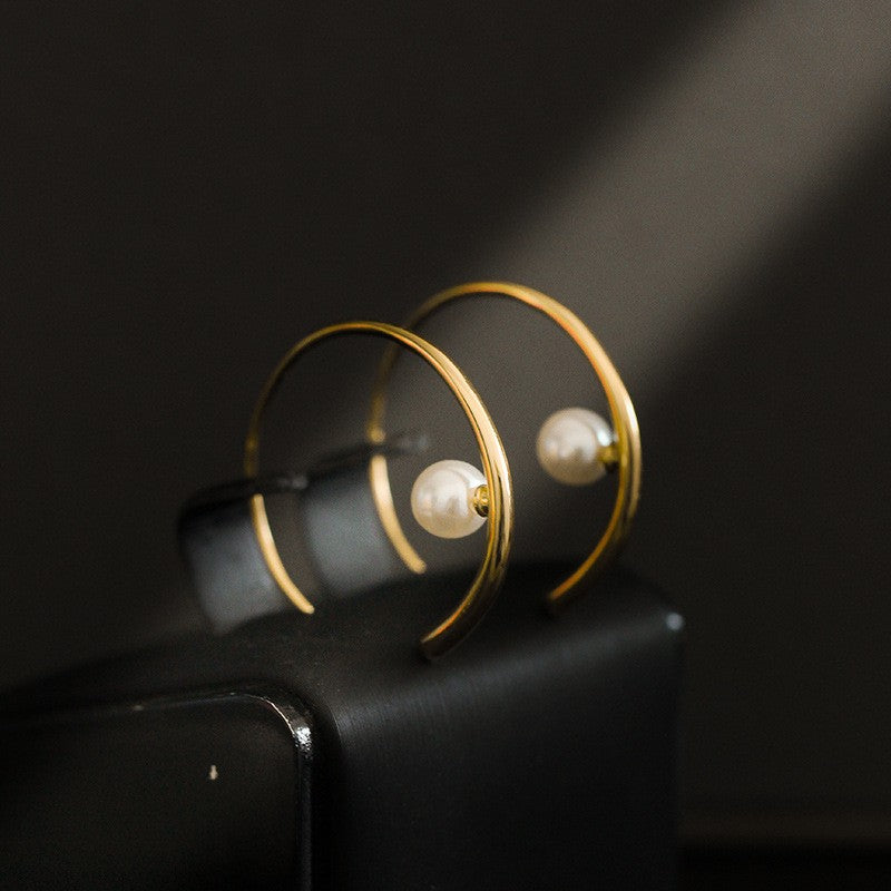 French Light Luxury High-end Fashion Commuter Brass Earrings Women‘s 925 Silver Ring Shell Bead Gold Earrings