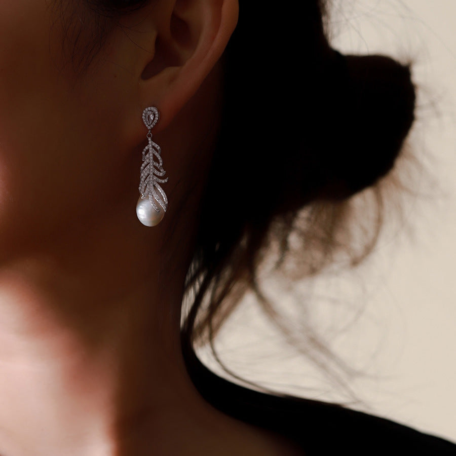 French Orchid Oval Hollow Zircon Earrings Women‘s High-end Niche Design Light Luxury Eardrop