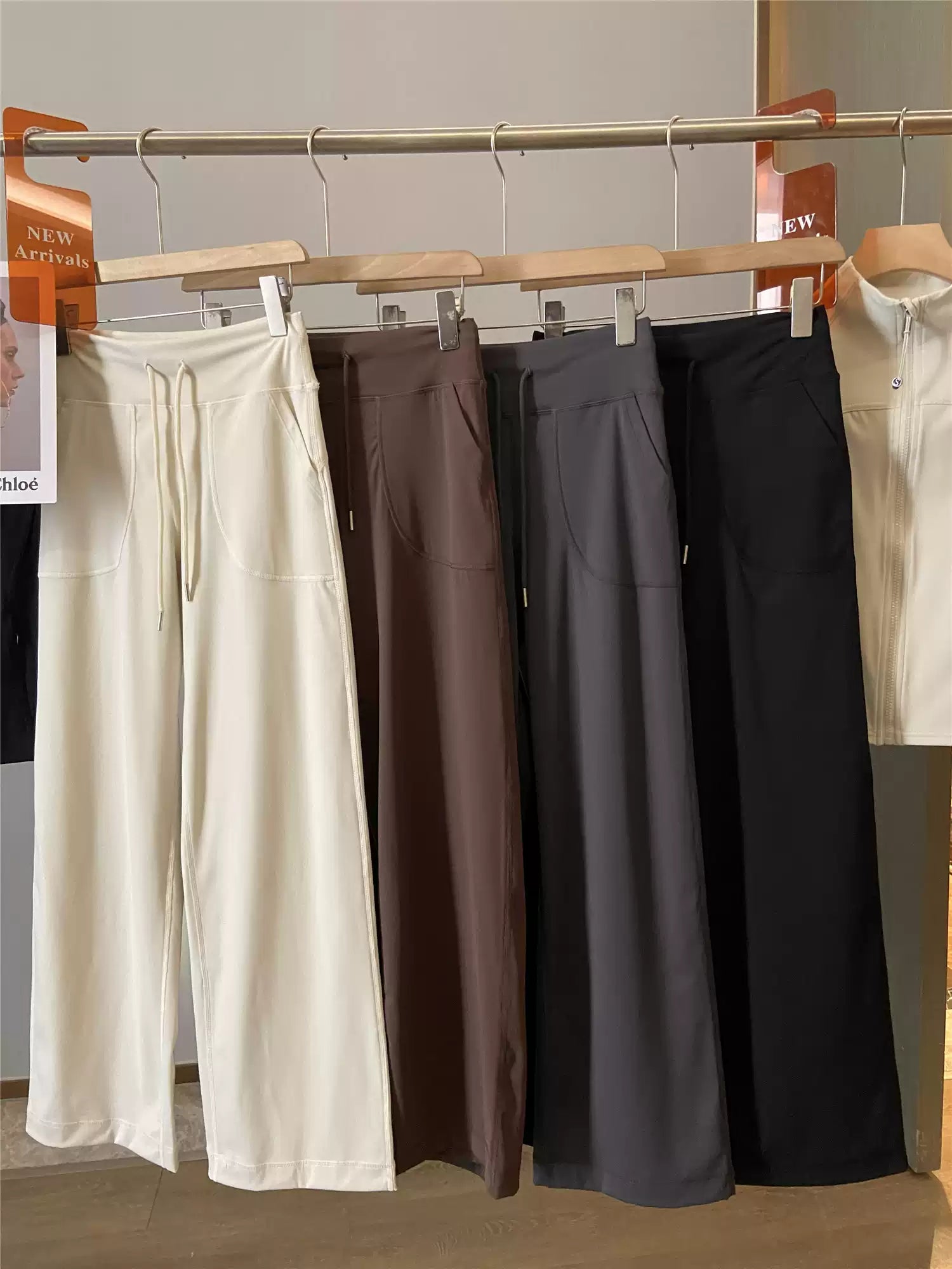 High Waist Drawstring Loose Sports Straight Black Yoga Pants High Elastic Pants for Women