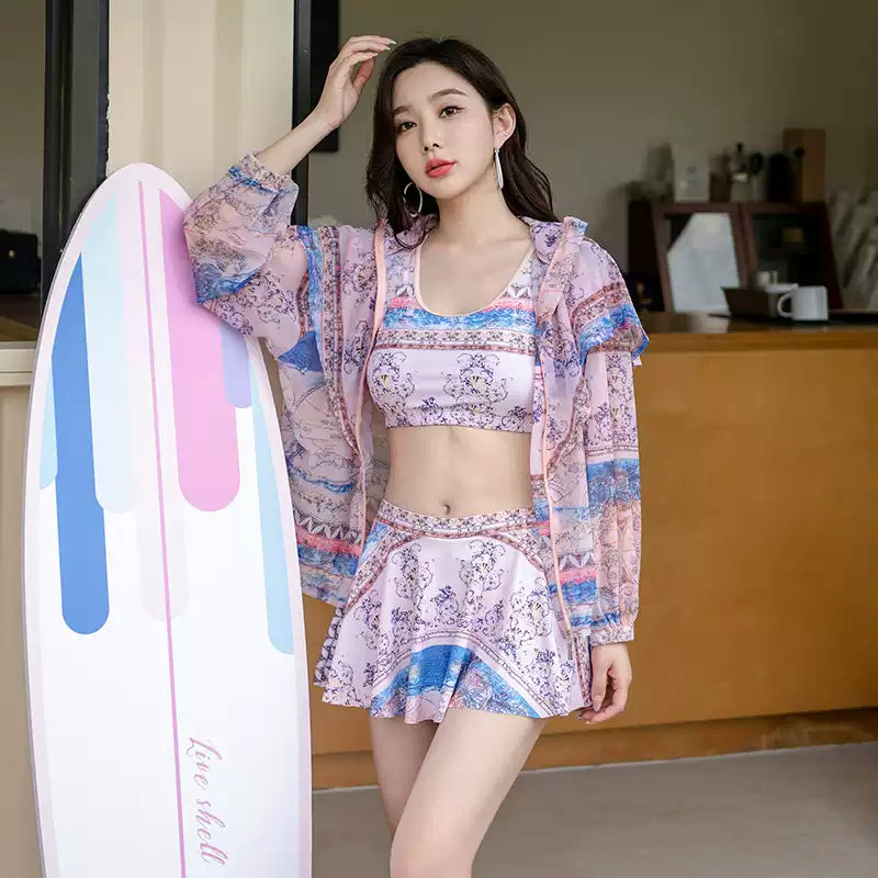 New Plus Size Sports Casual Swimsuit Split Vest Boxer Shorts Skirt Three-piece Swimwear Set