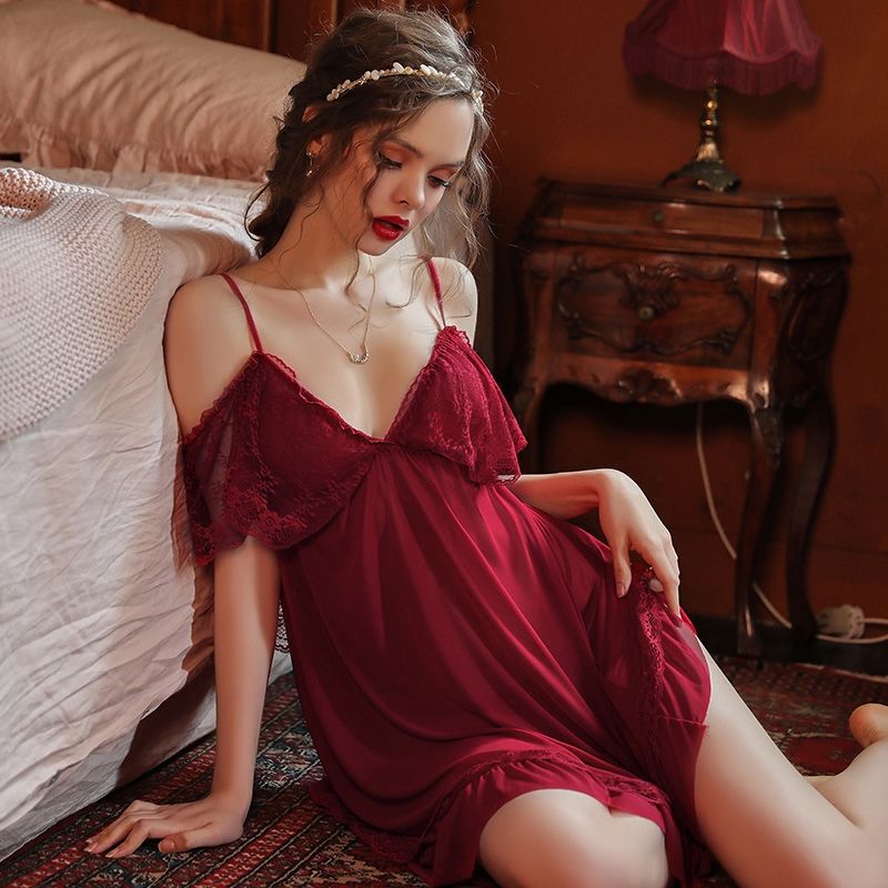 Plus Size Burgundy Sexy Extremely Tempting Hot Style Nightdress Women's Transparent Mesh Ice Silk Sexy Lingerie