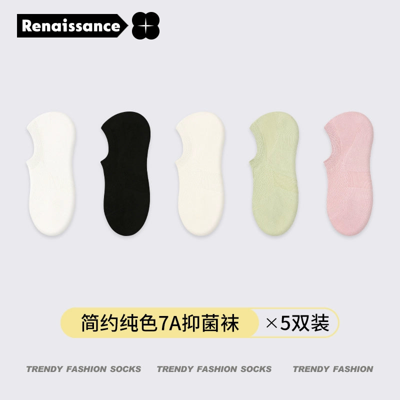 Solid Color All-match 7A Antibacterial Low-cut Non-slip Deodorant Thin Cotton No-show Mesh Boat Socks