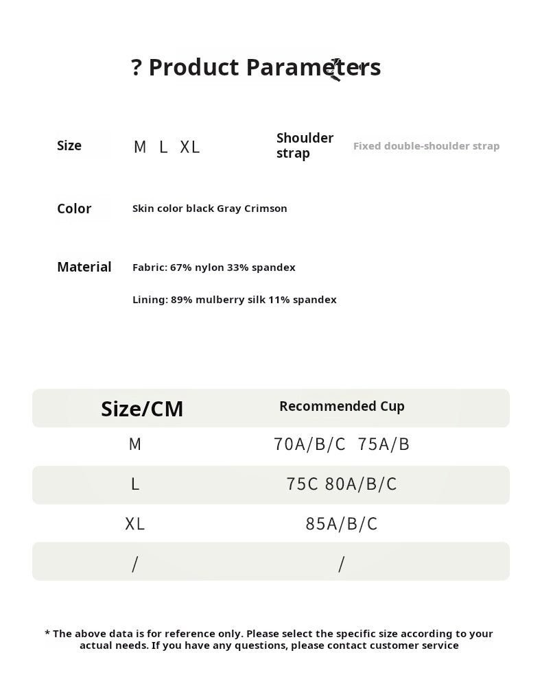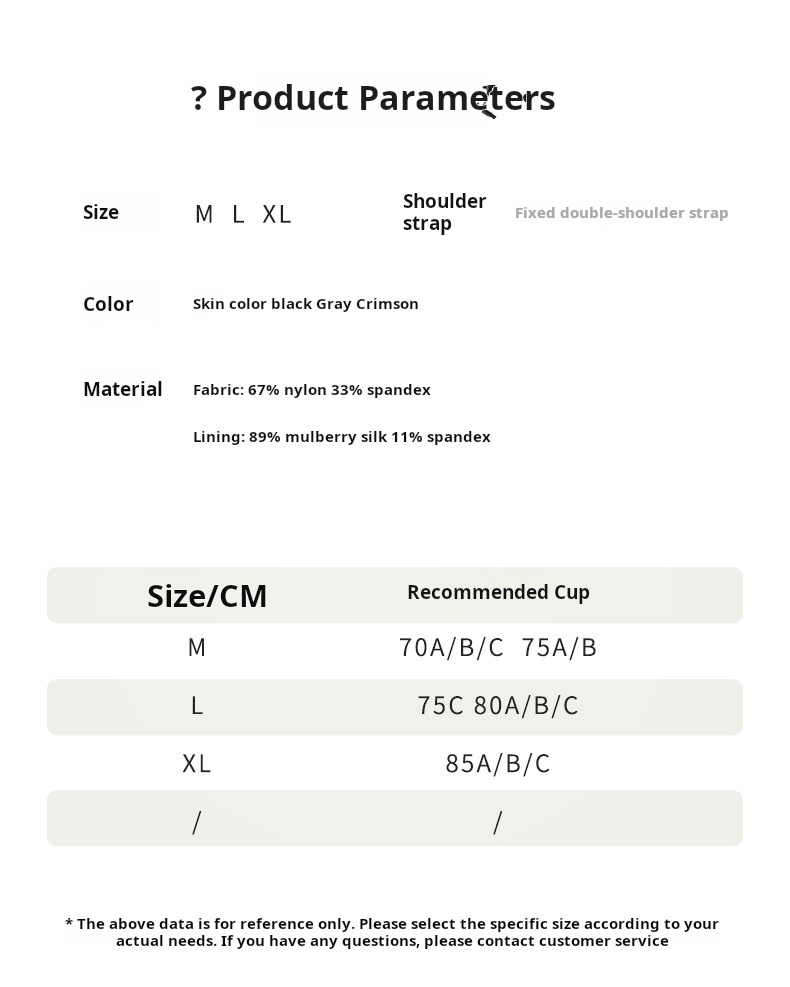 Introducing our premium sports bra, expertly crafted for women who demand both elegance and performance. Made with 67% high-stretch nylon fabric, this bra offers lightweight breathability and a seamless fit that moves with you, ensuring all-day comfort during workouts or daily wear. The inner lining features 89% premium mulberry silk, renowned for its soft, hypoallergenic, and moisture-wicking properties—keeping you cool and dry whether you're practicing yoga, running, or hitting the gym.