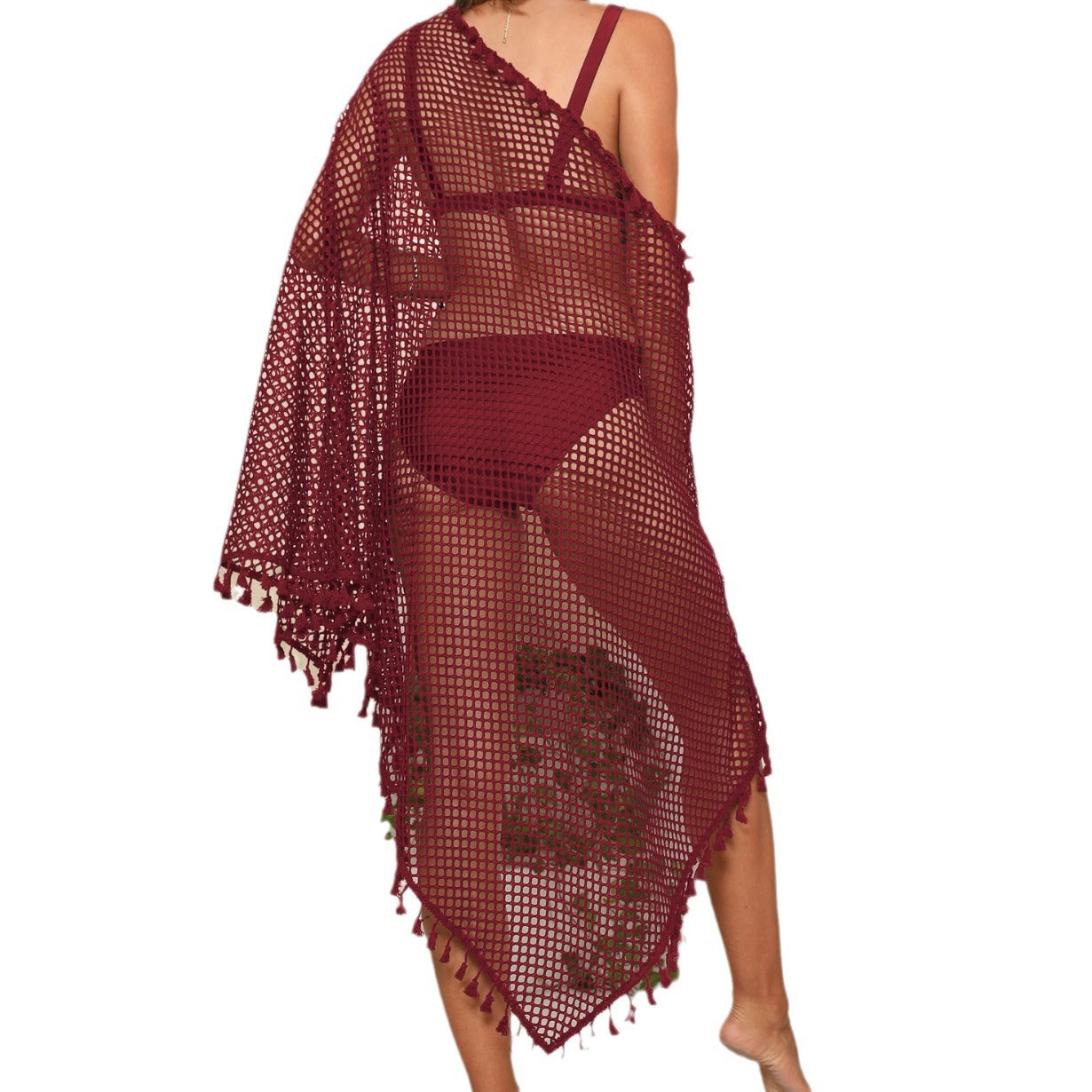 White Seaside Vacation Beach Swimwear Shawl Women's Splicing Tassel Sexy Perspective Grid Irregular One-piece Beach Bikini Skirt